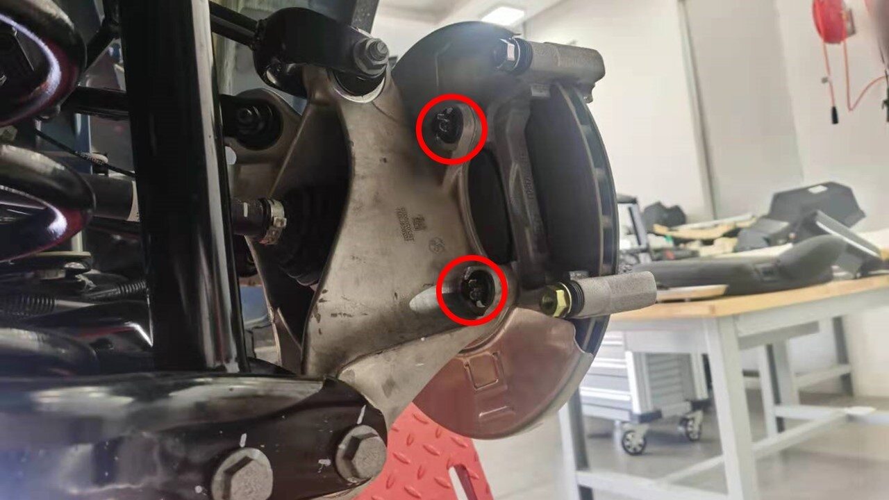 将右后制动钳支架从右后转向节上拆下。