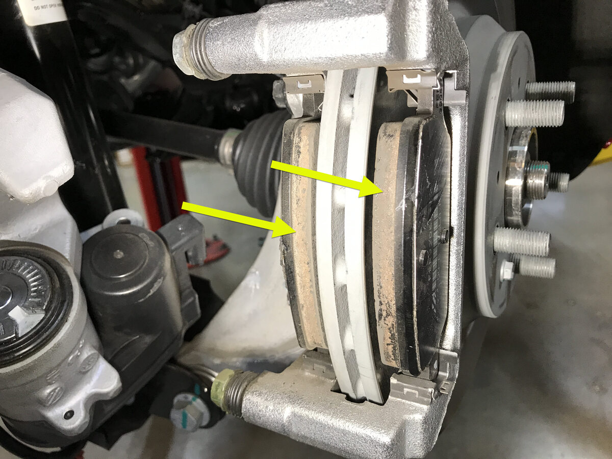 警告请勿混用制动片,因为它们在制动钳中的磨损程度各不相同。