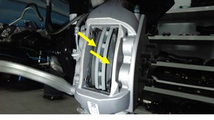 警告请勿在制动片背面涂抹任何润滑剂,谨防污染摩擦材料。