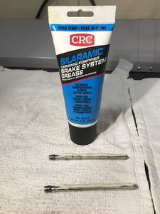 在左前制动钳的定位销上涂抹一层 Silaramic 润滑剂。