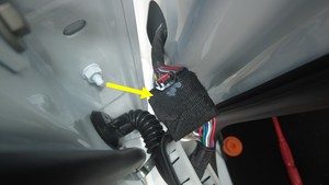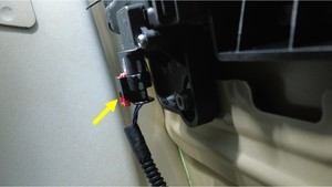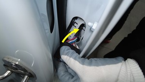- 将左后车门线束穿过前门内侧线束端口。