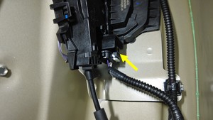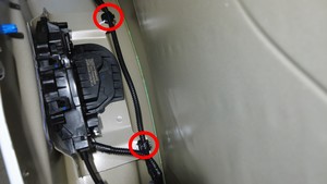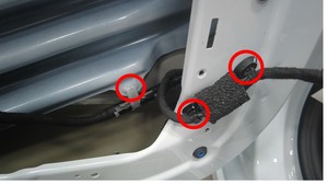 松开将左后车门线束固定到左后车门的卡子(7 个)。