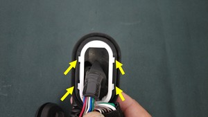 松开将左后车门线束密封件固定到 B 柱的锁片(4 个)。
