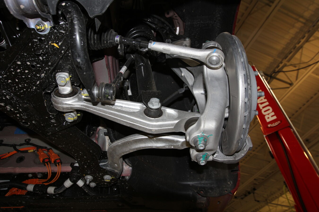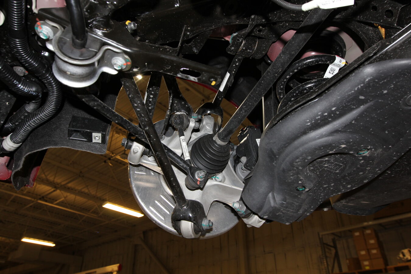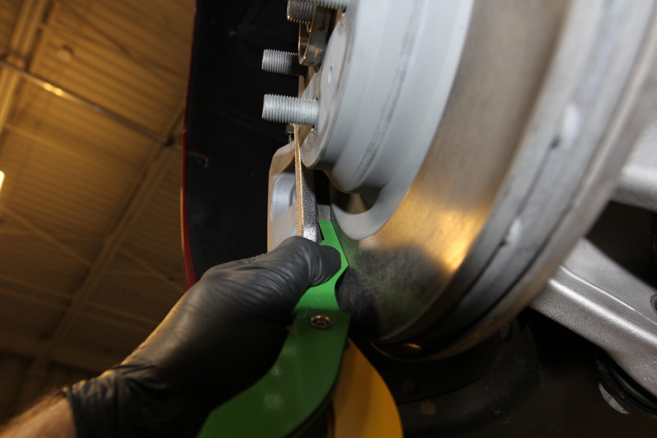 检查左后和右后轮毂,确认后悬架连杆游隙。