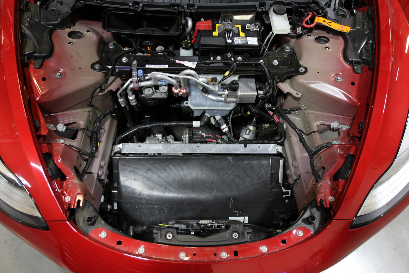 注检查车辆前备箱盖区域。检查是否存在异常损坏、磨损、严重锈蚀、接线破损或冲撞损坏的迹象。注意安全相关部件,如发现重要问题,务必进行记录。