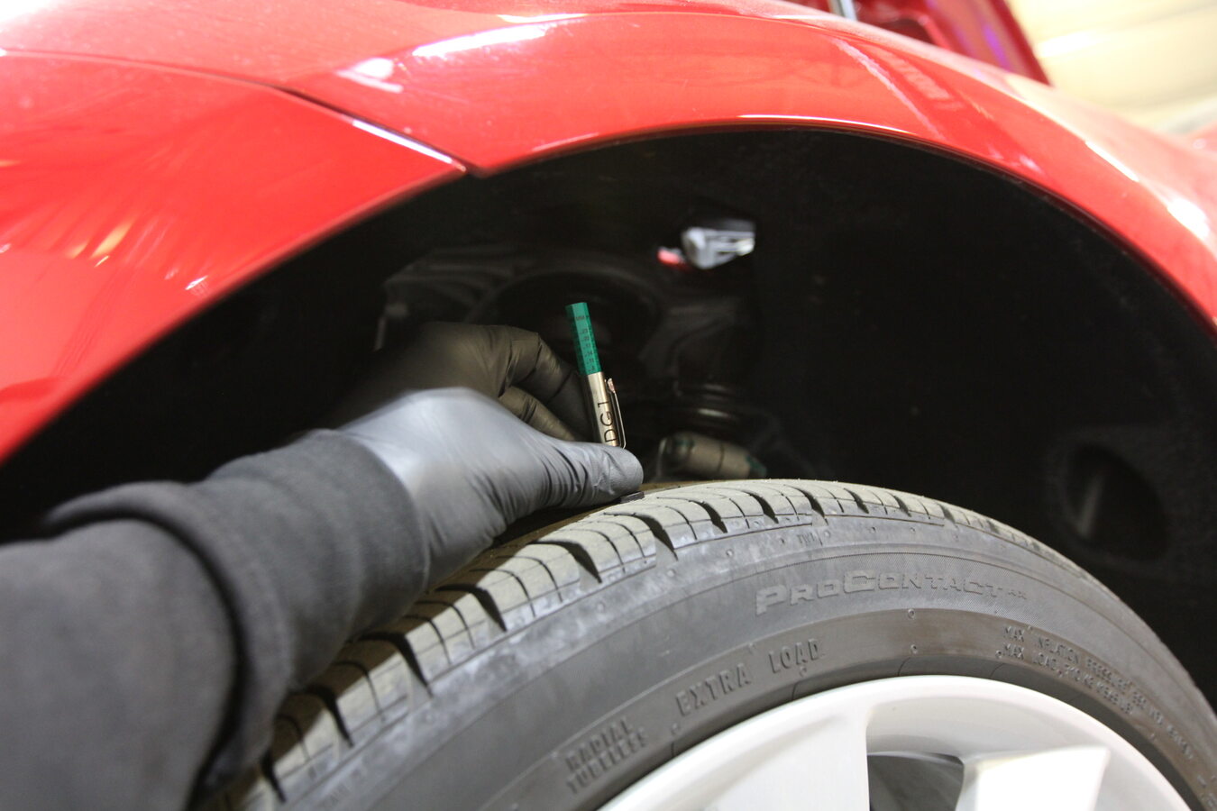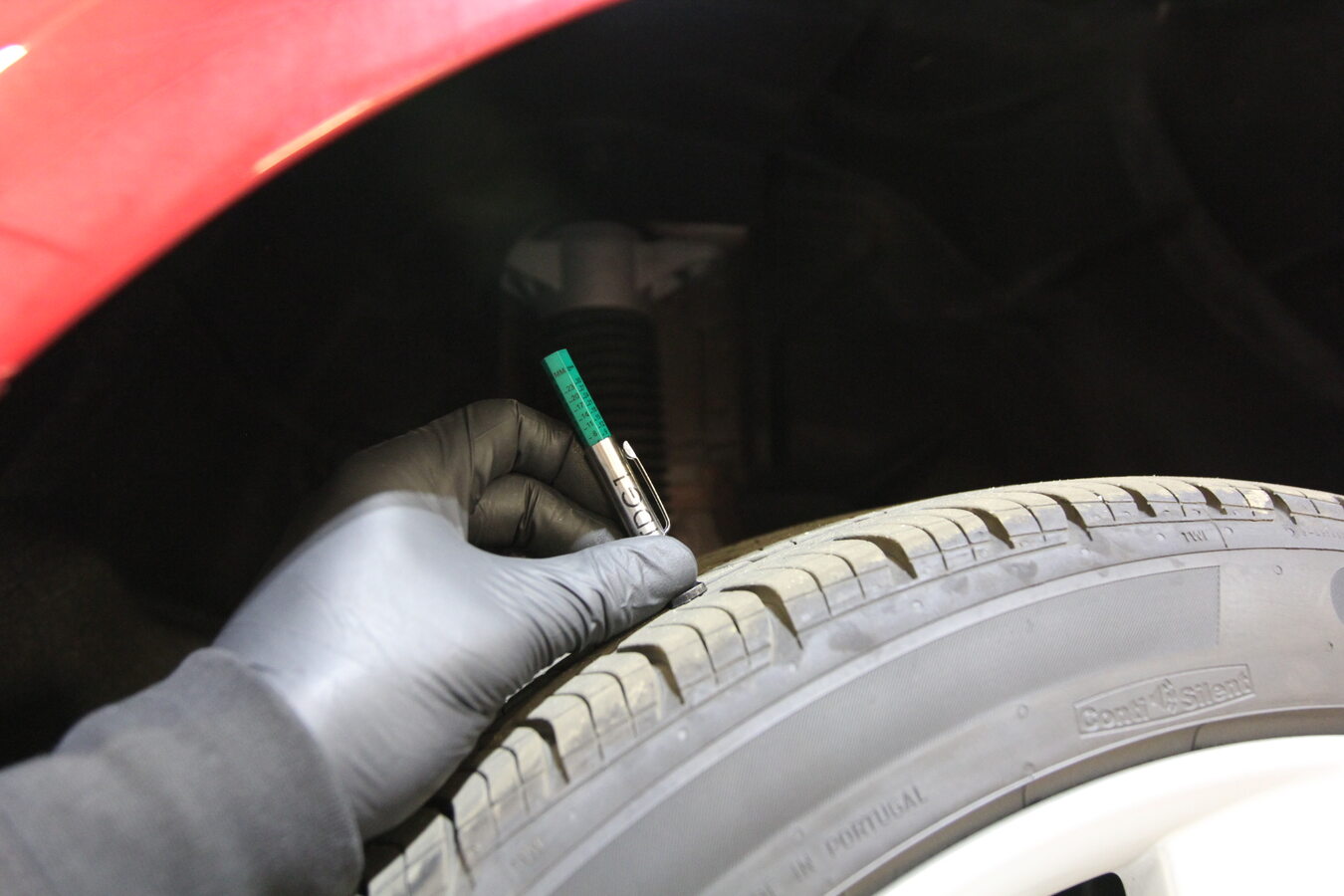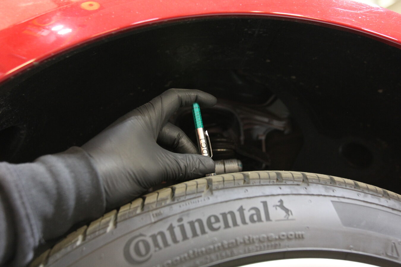 记录左前轮胎的胎纹深度。