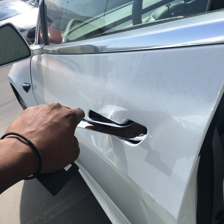 注检查并记录车门把手功能是否正常以及车门是否能在全范围内正常活动。通过外部检查,确认是否存在与亮条以及车门至车身处相互干扰的情况。记录是否产生如吱呀声、嘎吱声和咔嗒声等噪音以及存在操作中断或未完成的情况。
