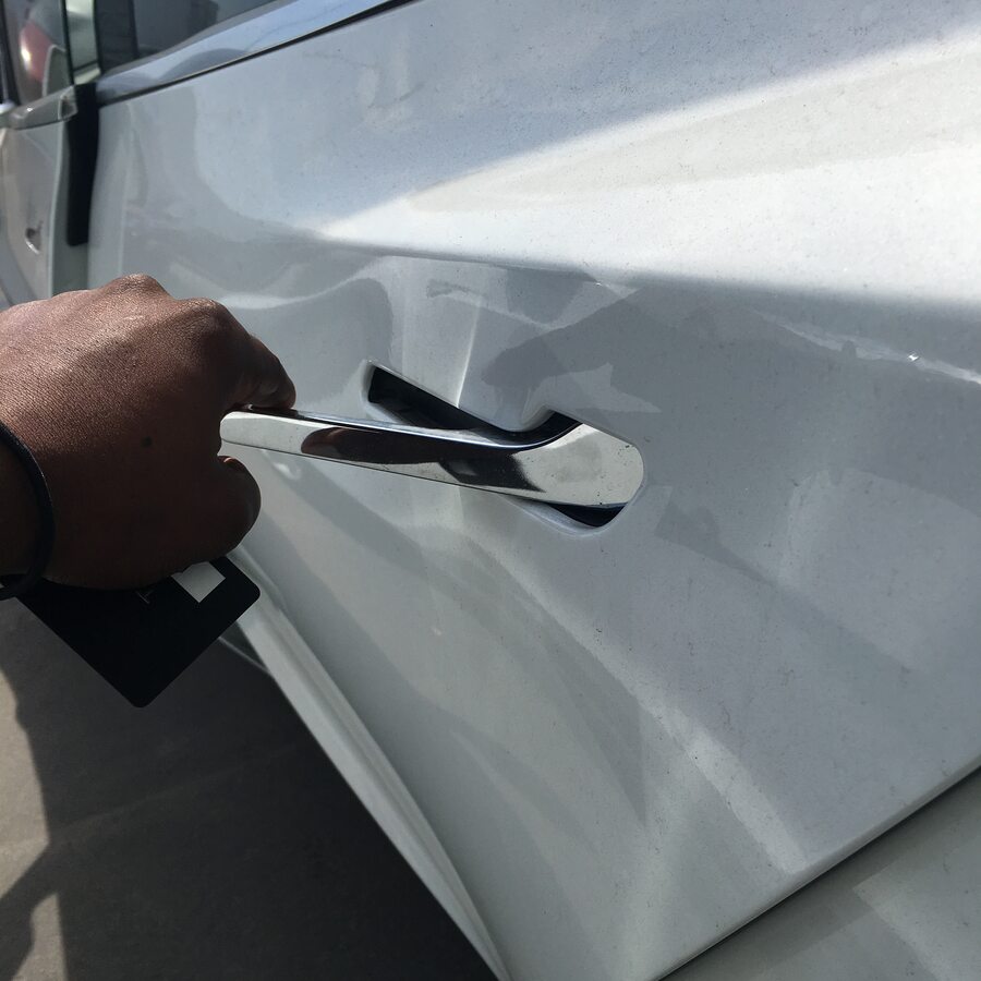 注检查并记录车门把手功能是否正常以及车门是否能在全范围内正常活动。通过外部检查,确认是否与亮条以及车门至车身处相互干扰,产生如吱呀声、嘎吱声和咔嗒声等噪音以及存在操作中断或未完成的情况。