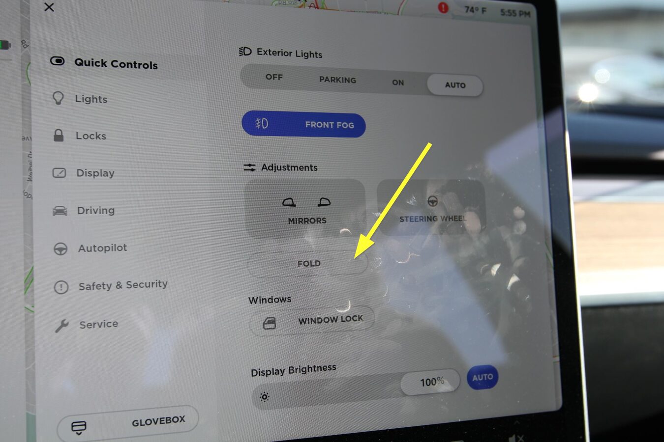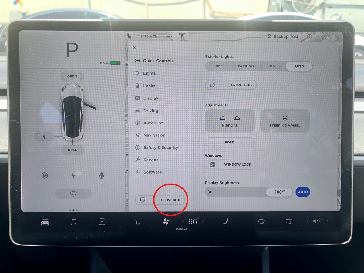 在触摸屏上,点击以打开手套箱。
