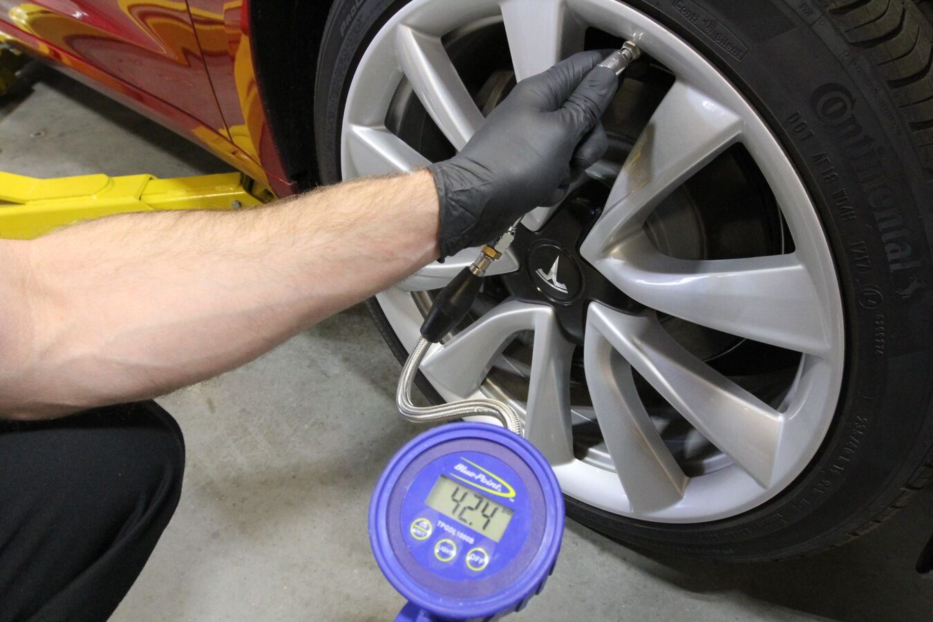 手动检查所有四个轮胎的胎压。