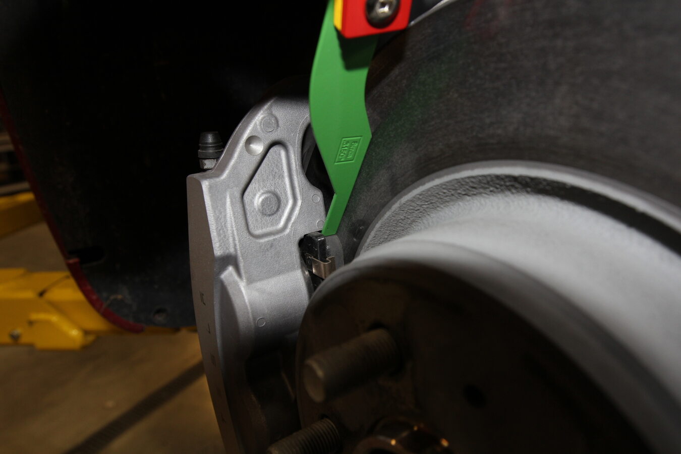 测量并记录左前制动片厚度。