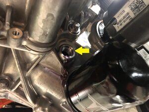 将机油排放容器放置在机油滤清器区域下方,然后将机油滤清器从驱动单元上拆下。