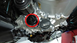 - 将注油塞从后驱动单元上拆下,等待 10 分钟,使机油自然流出,直至呈滴状。