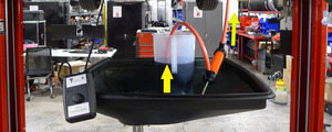 将定量好的储液容器放置在排放篮中,将输入软管完全浸入容器,然后向泵内注满 KAF 1 油液。