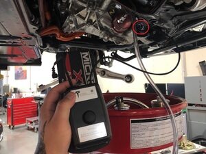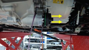连接机油泵连接器,然后从驱动单元下方取走机油排放容器。