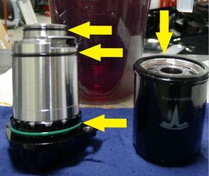 检查拆下的机油泵上的 3 个 O 型环、拆下的加注塞上的 O 型环以及拆下的机油滤清器上的密封件。确保 O 型环或密封件既没有落在外壳内,也没有损坏。