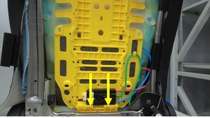 安装新的卡子(2 个)(2077509-00-A),将腰部支撑泵固定到座椅框架。