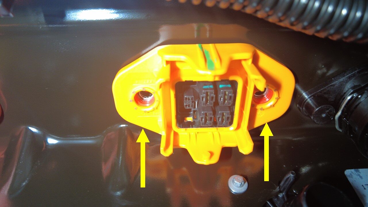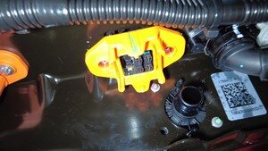 注使用塑料撬具确保引脚支架完全插入到高压接头中,并且未进入高压电池。