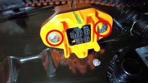 注确保正温度系数加热器和空调压缩机引脚支架在支架中牢固就位。