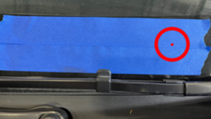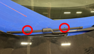 - 在清洗器叶片正上方的挡风玻璃上粘贴胶带,以帮助定位清洗器喷嘴目标点。