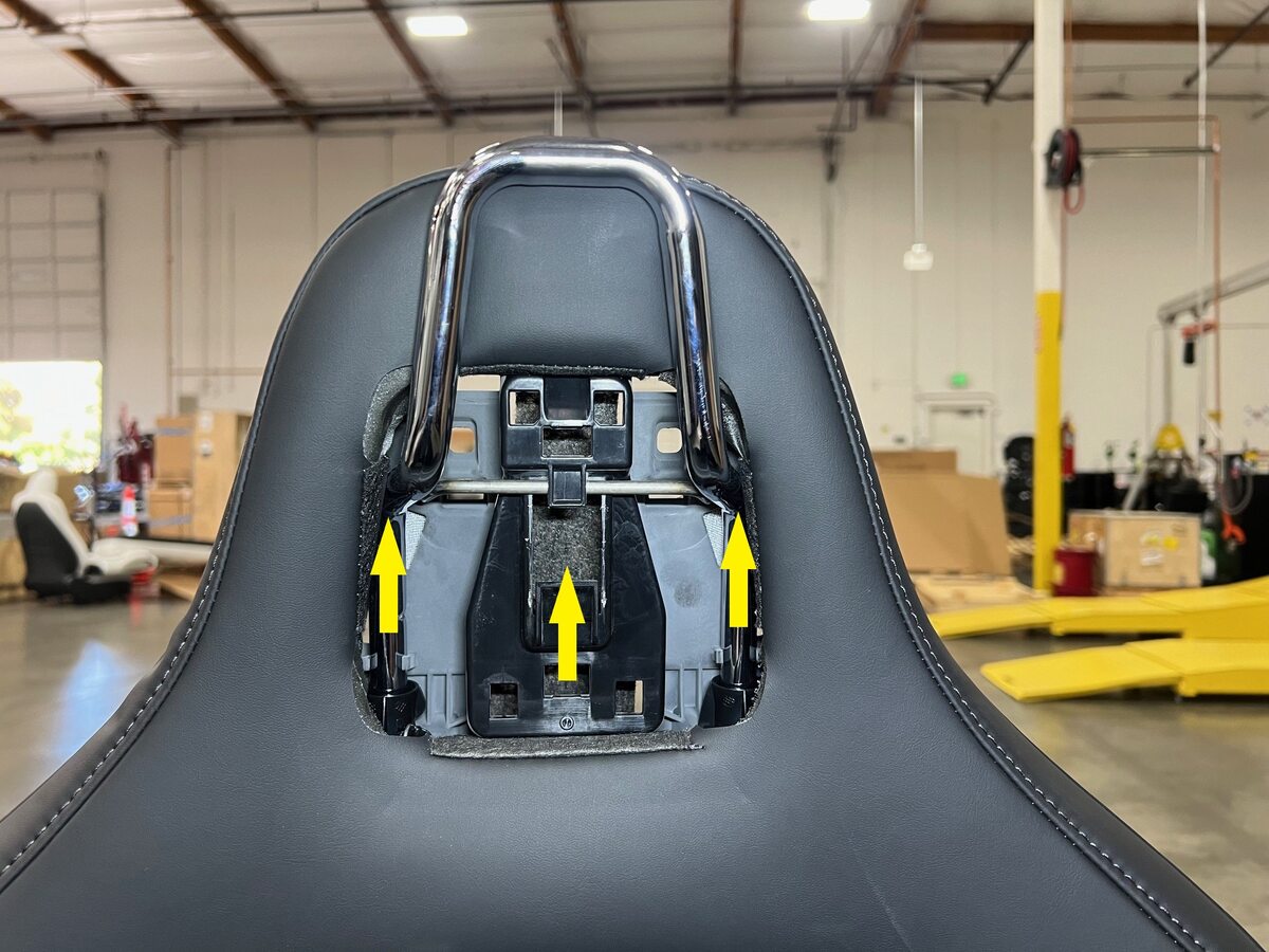 注2x locking clips, Ensure the headrest is fully seated, An audible click will be heard when installing the headrest, Ensure the headrest assembly is seated by tugging up on the headrest