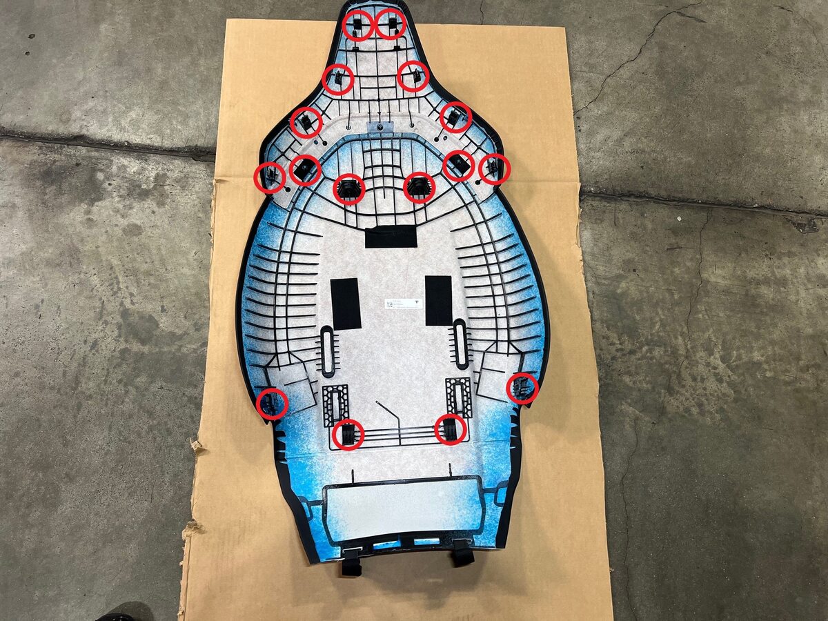 注Discard any residues found on seat back, this can cause NVH noises in the future