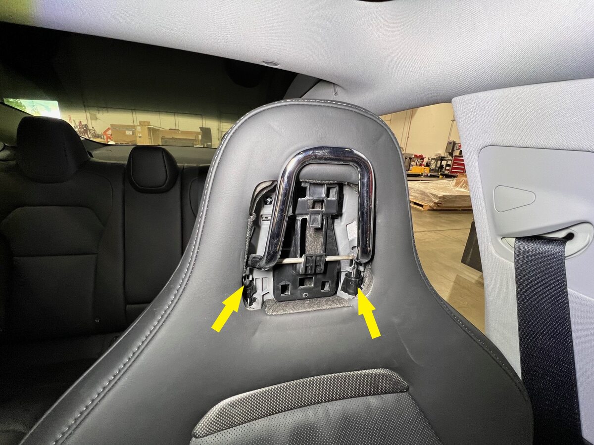 注2x locking clips, depress headrest release clips, ensure both clips are fully released then release by pulling straight up
