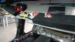紧固将挡风玻璃线束固定到右侧 A 柱的卡子(6 个).
