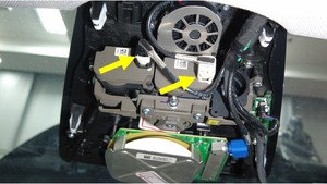 - 拆卸摄像头下盖。请参阅车内后视镜,摄像头下盖 ((拆卸和更换))。