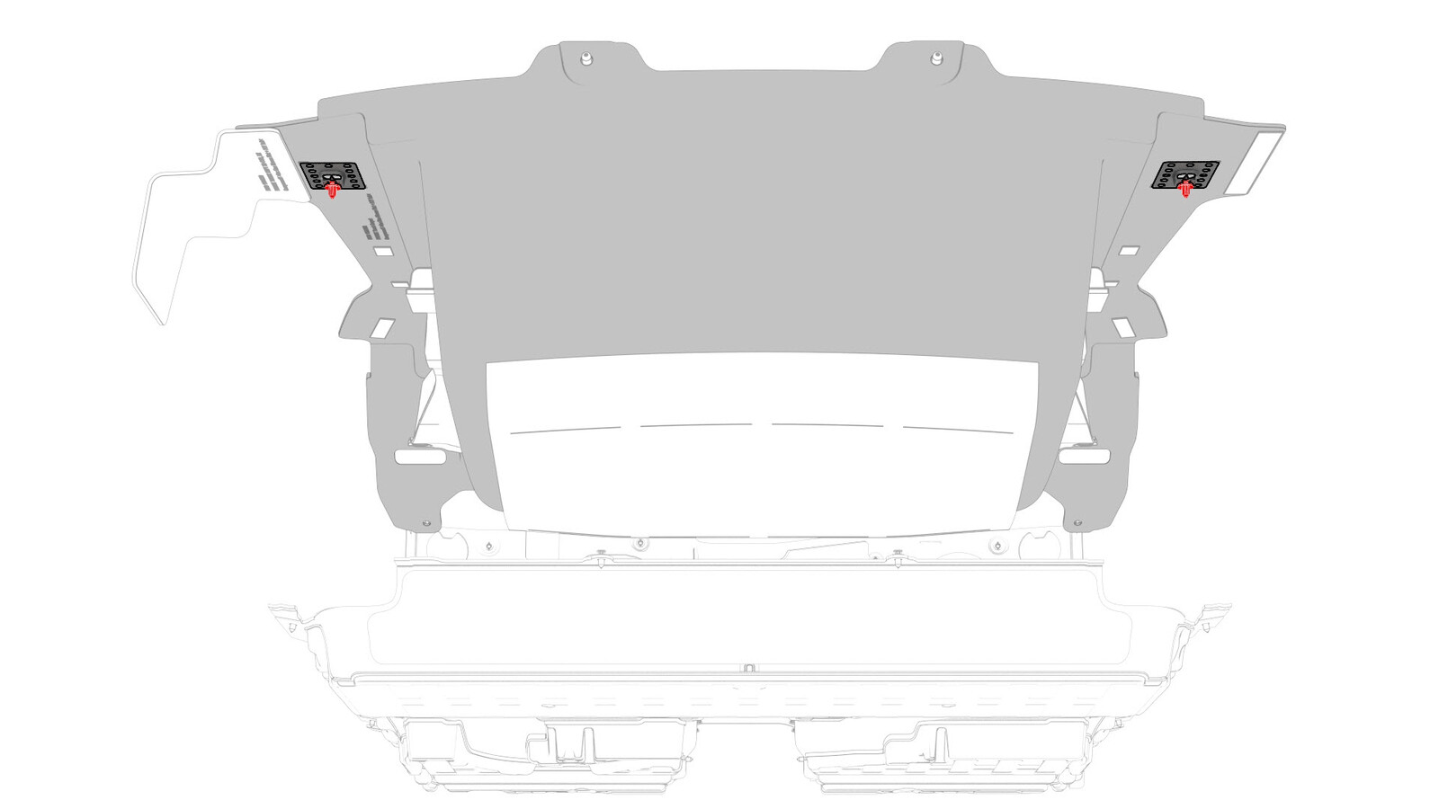 连接将后备箱地毯固定到车身的卡子,然后将后备箱地毯安装到车辆上。