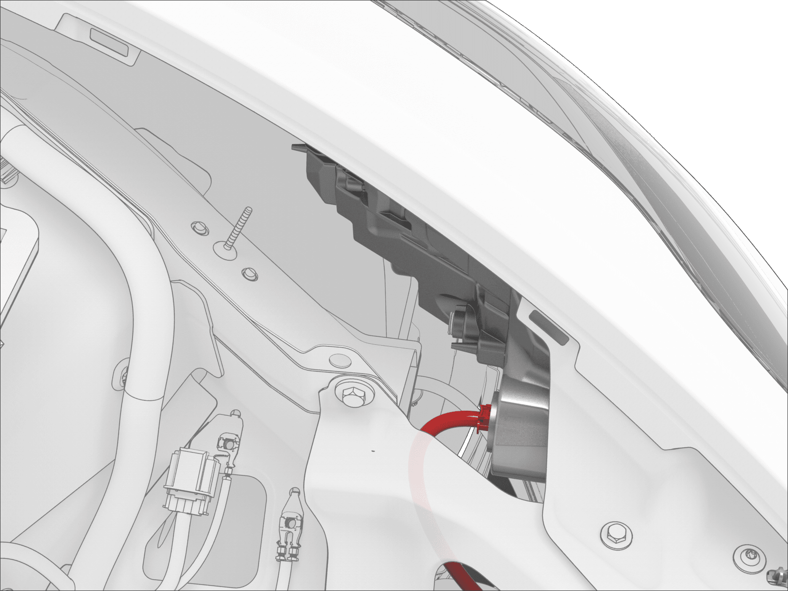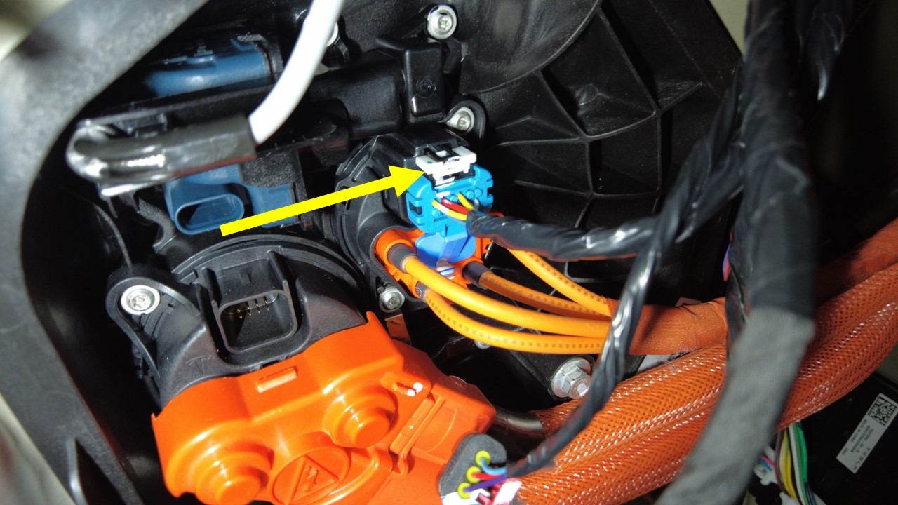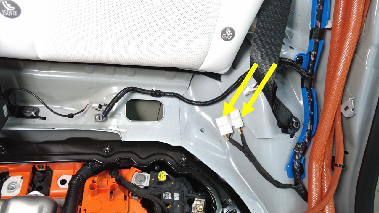 将充电接口电子控制单元 (ECU) 连接器连接到左侧车身线束上。
