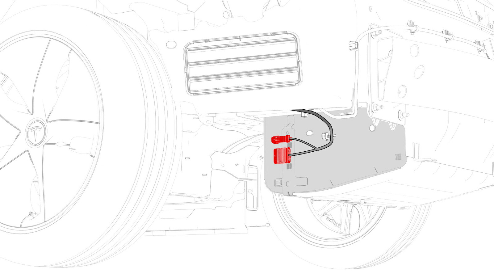将电气线束连接到后副车架线束连接器和左侧电子驻车制动连接器。