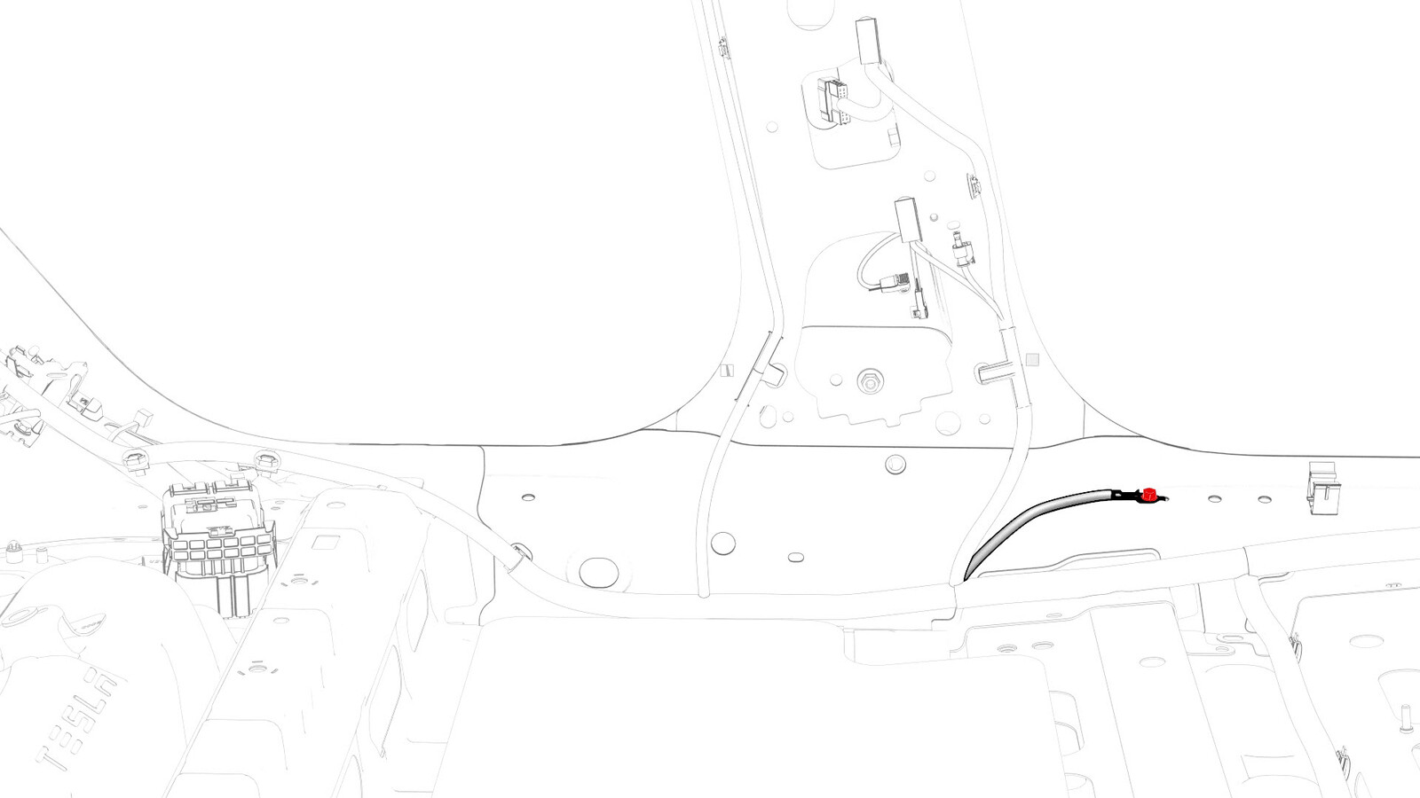 松开将电气线束固定到车身的夹子,然后将电气线束后副车架部分穿过左侧后备箱隔板。