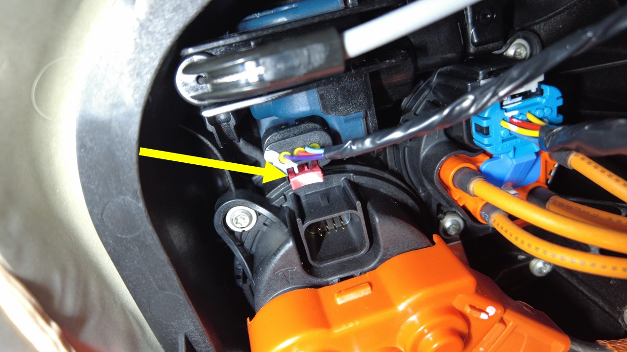 断开左侧电动支柱连接器。