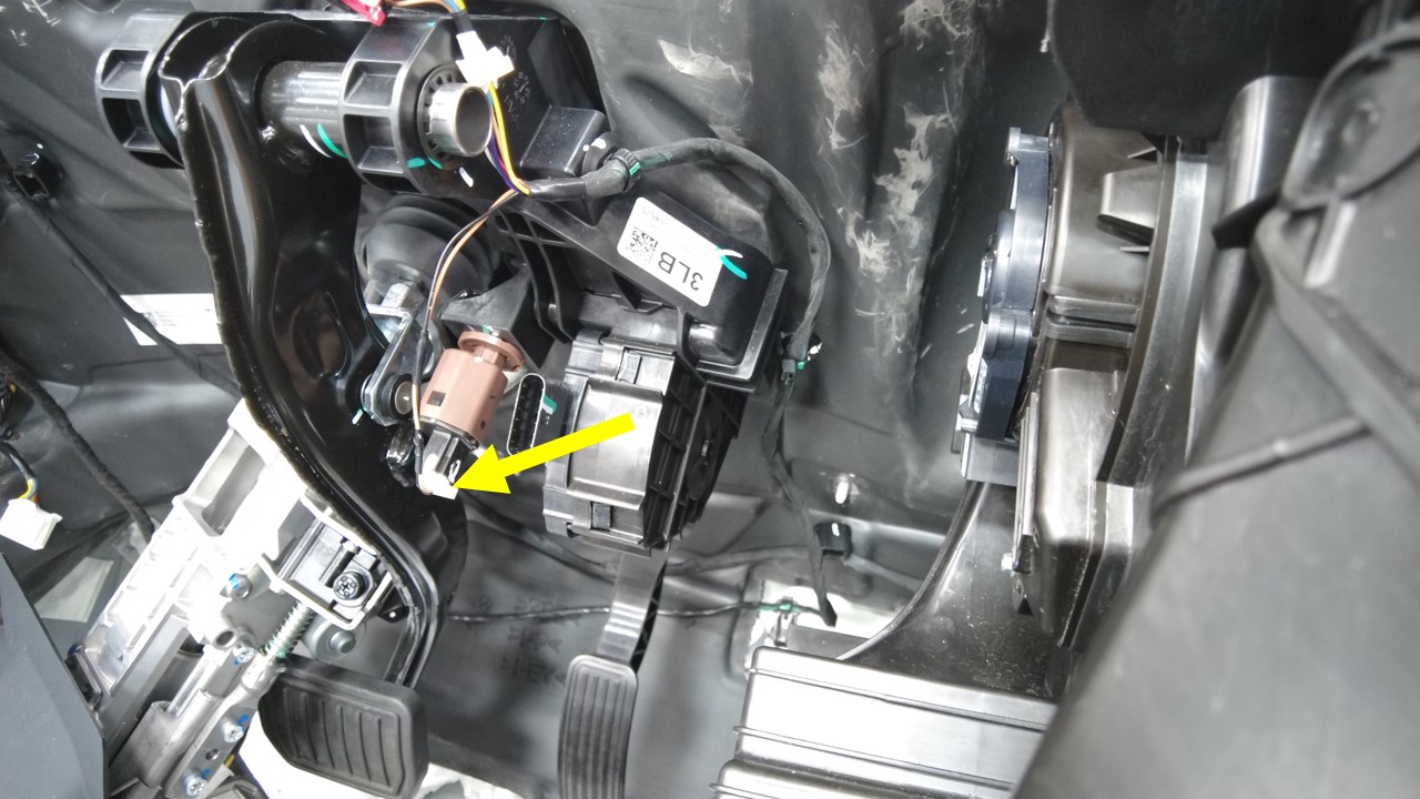 连接 B 柱碰撞加速计传感器连接器。