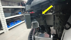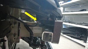 将保护压力管传感器总成放置到前保险杠梁泡沫上,然后安装新的卡子(2 个),固定左右行人保护压力管传感器。