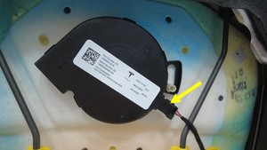 连接第一排右侧座椅靠背通风扇连接器。