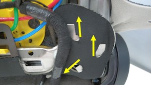 将加热器线束从第一排右侧座椅靠背外罩上拆下。