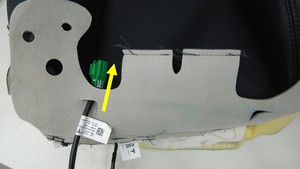 将第一排右侧座椅靠背外罩拉离第一排右侧座椅侧气囊,以便接触气囊电气连接器。