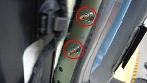 拆下盖住第一排右侧座椅靠背框架外角的上部板。