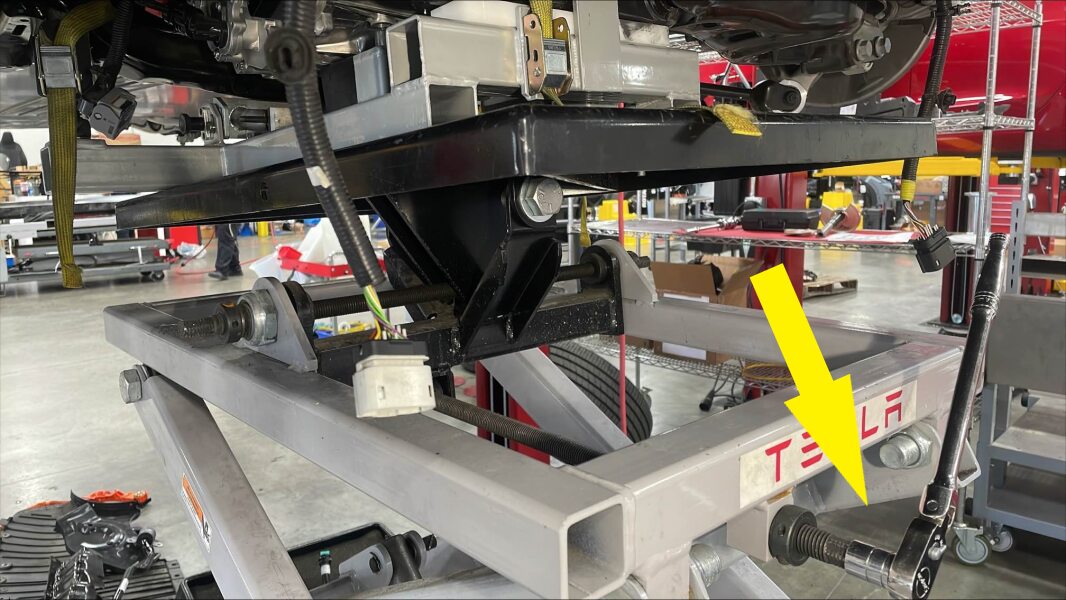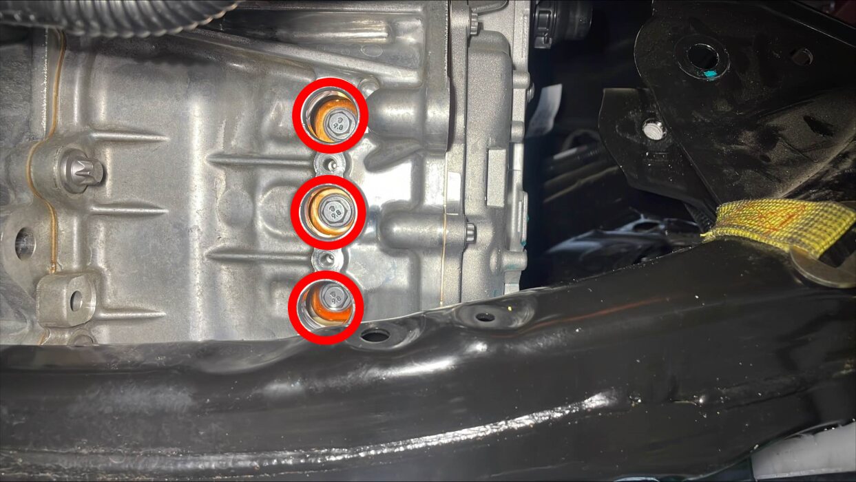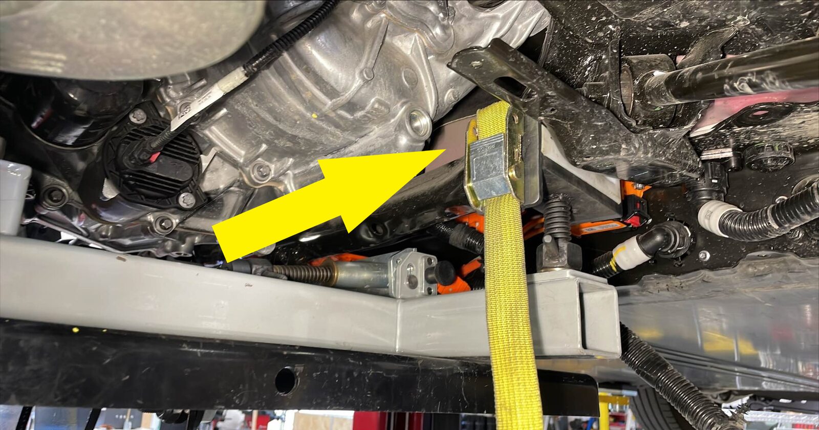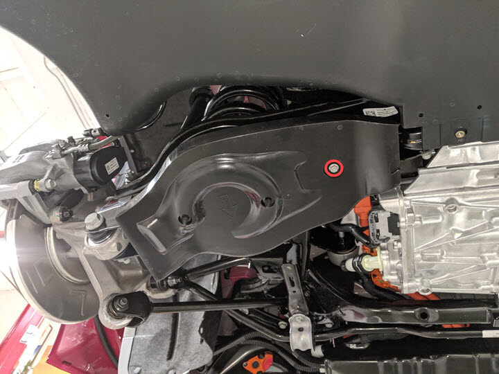 拆下用于固定高压电池外壳后滑板的下部螺栓。