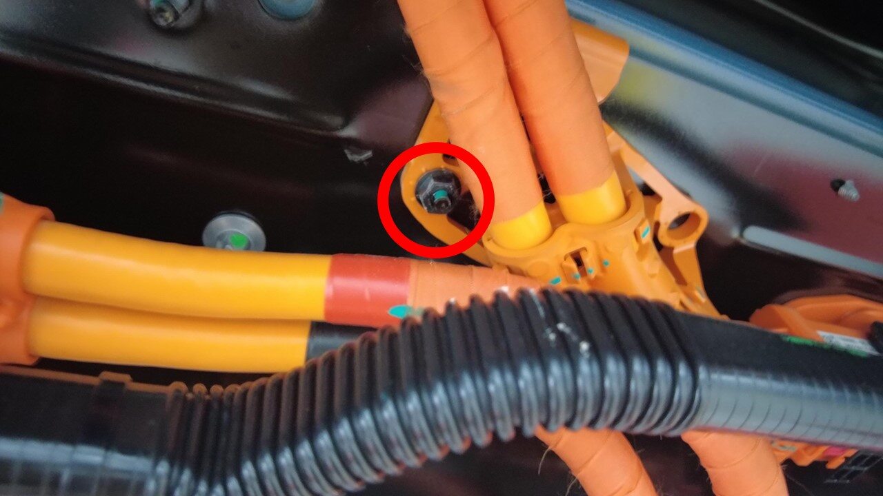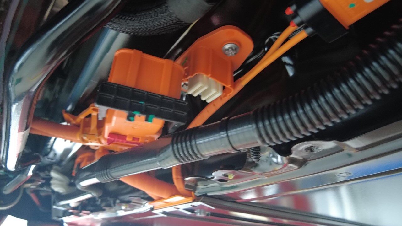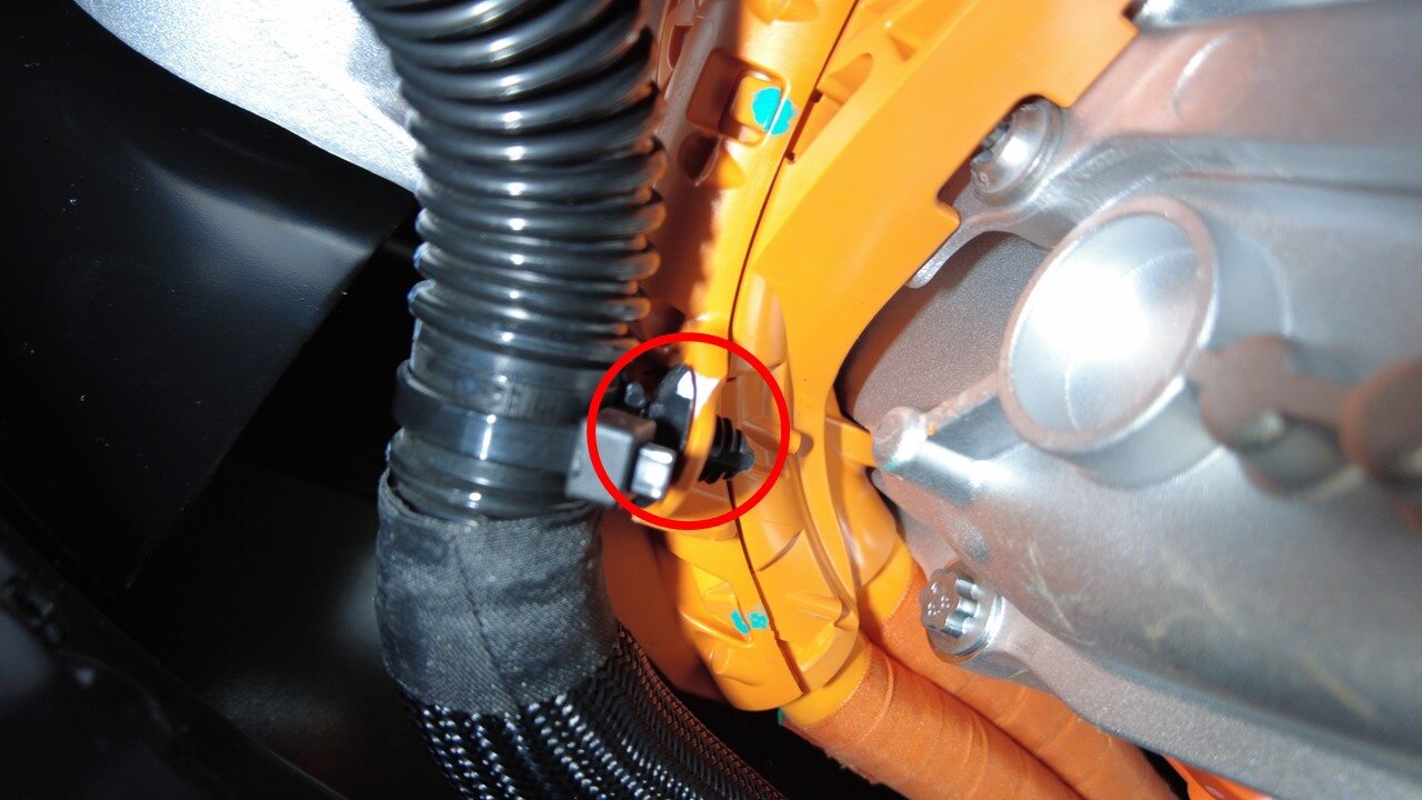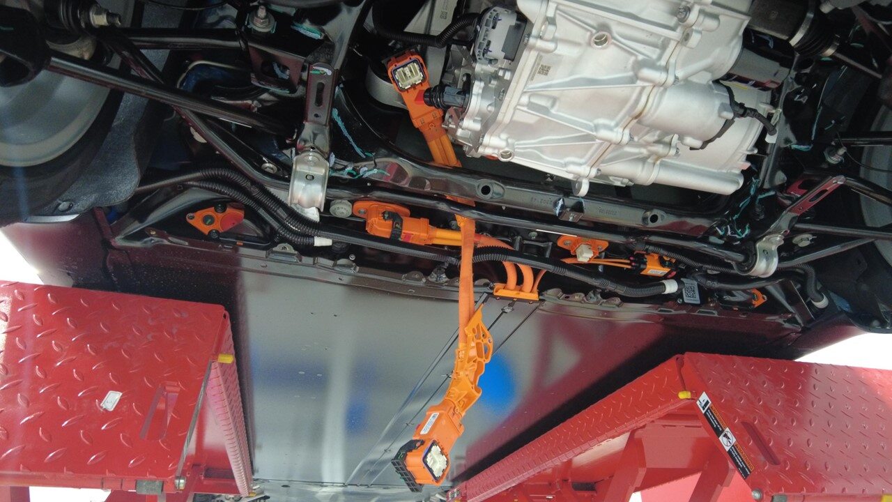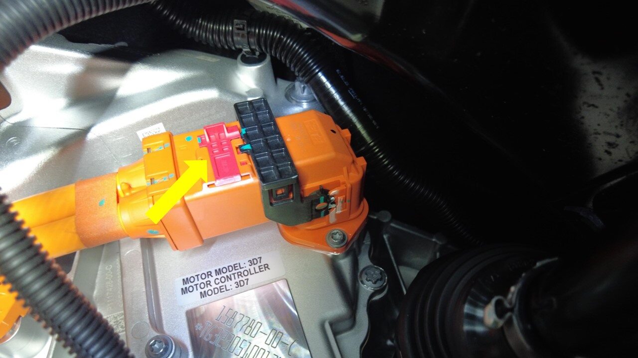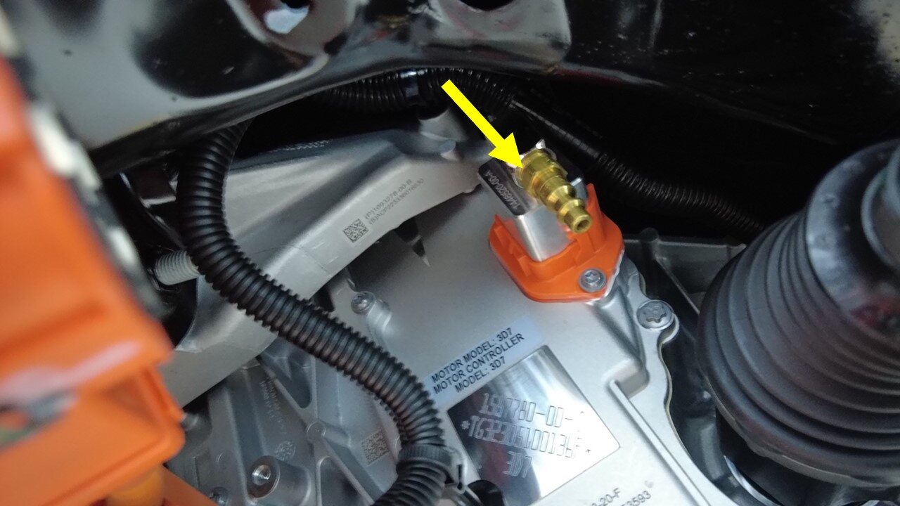 将后驱动电机变流器入口管从高压电池左后侧断开。