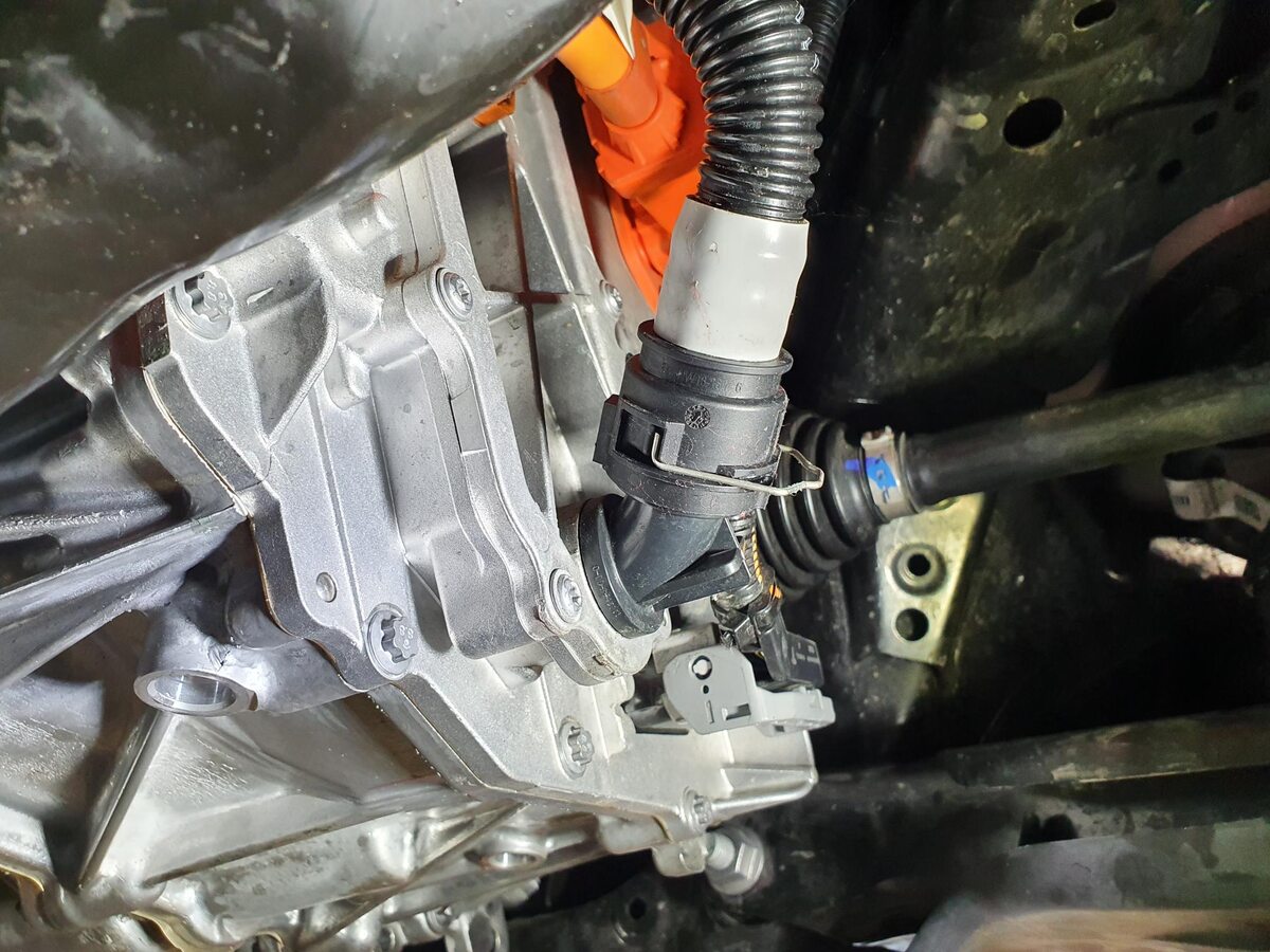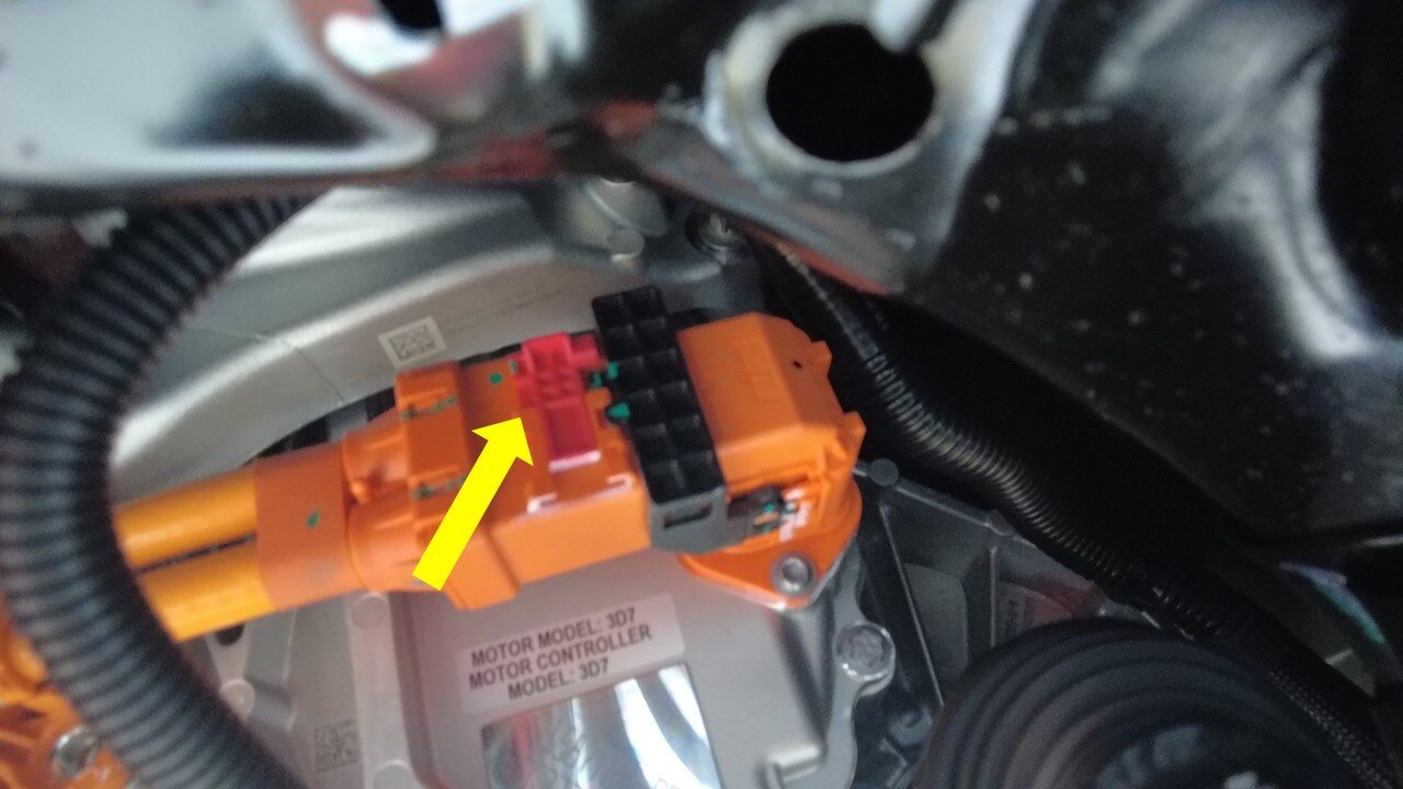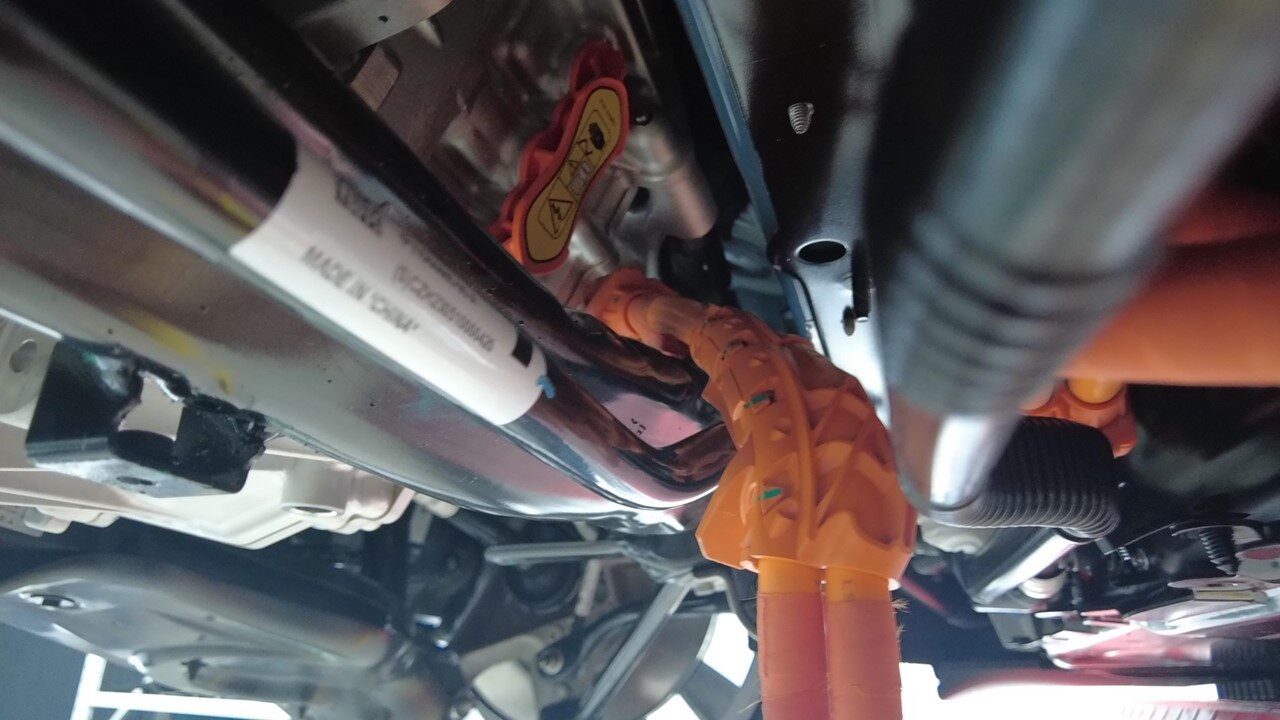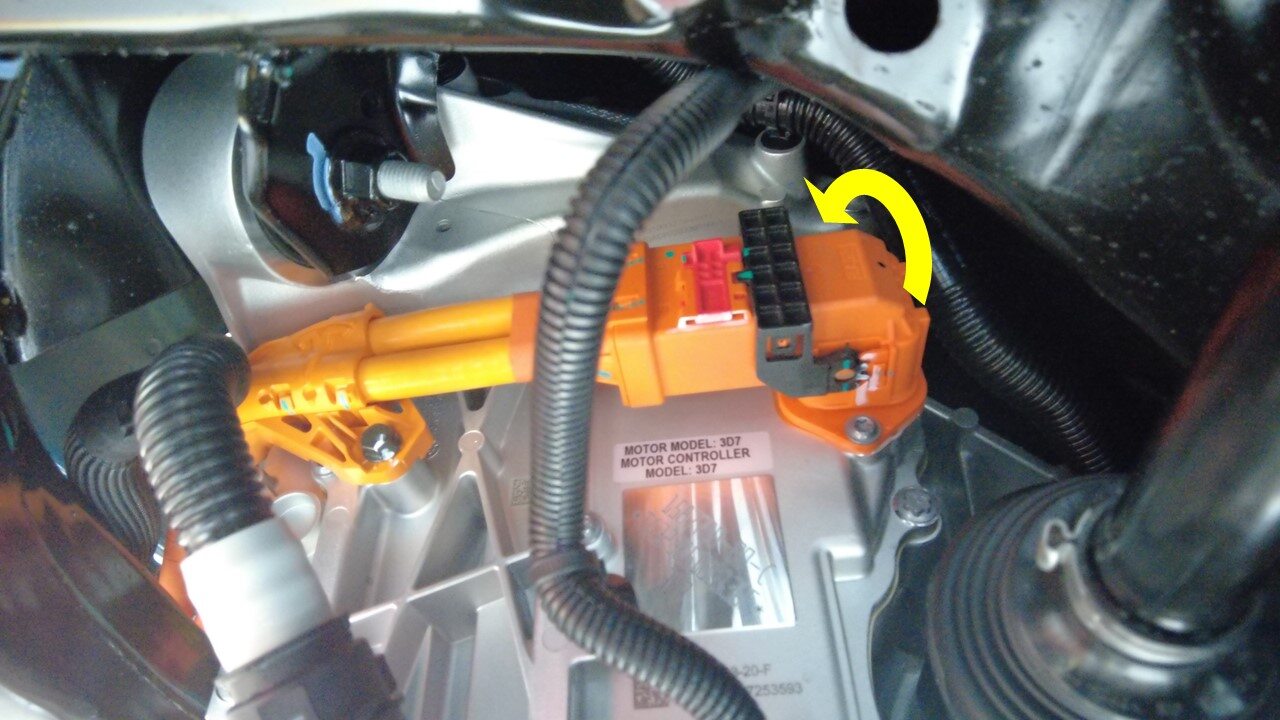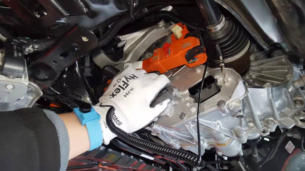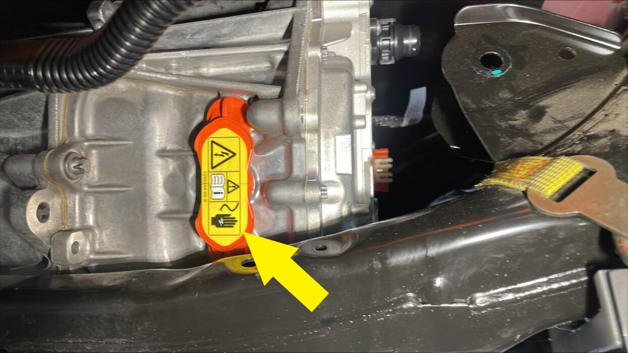 将后驱动电机变流器入口管从高压电池左后侧断开。