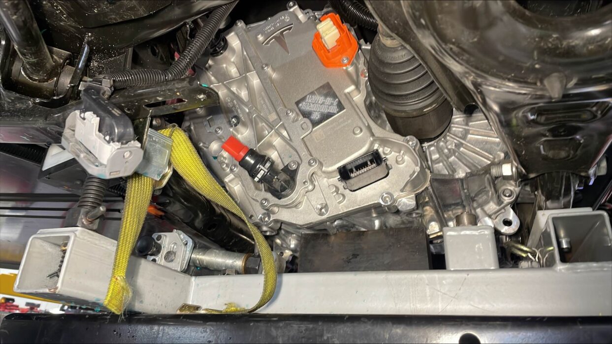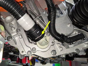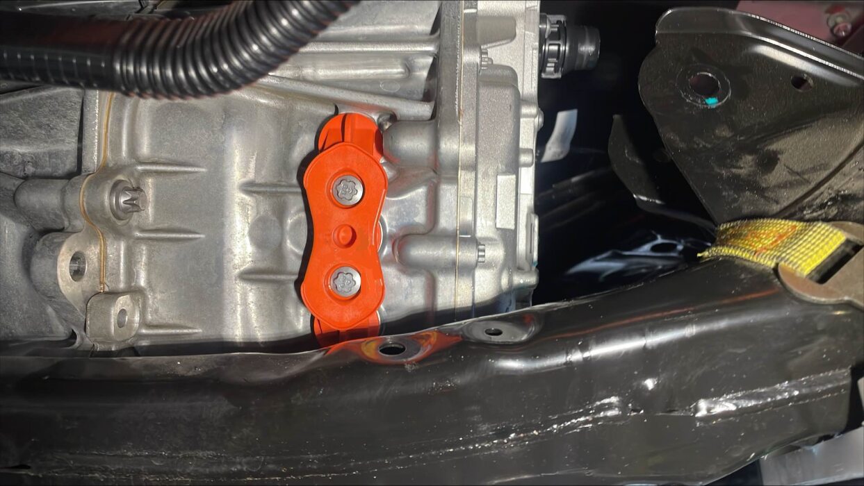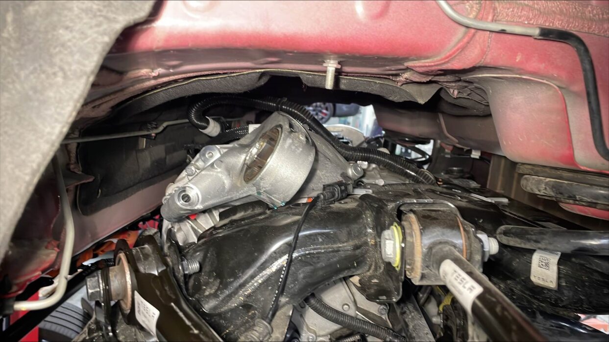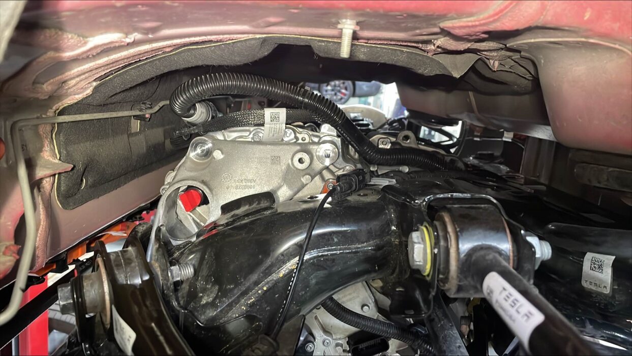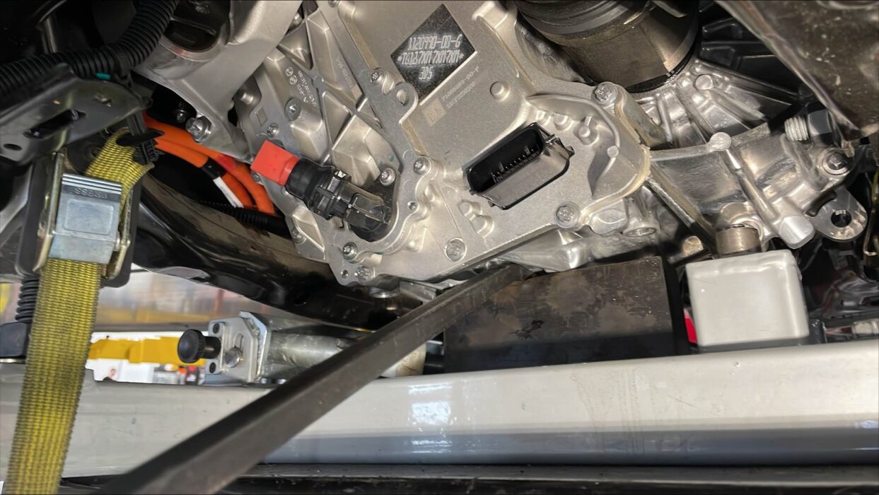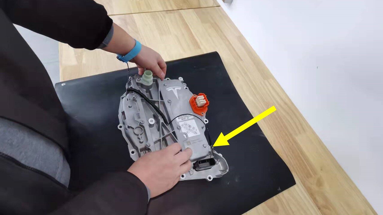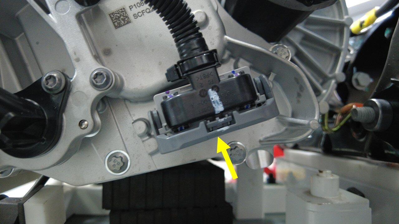 将后驱动电机变流器入口管从高压电池左后侧断开。