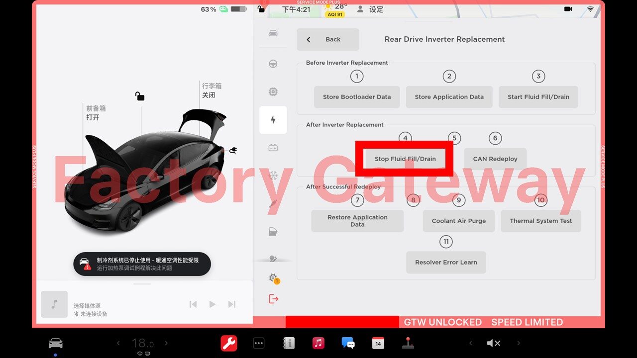 在 UI 界面上选择 "Start Fluid Fill /Drain"。