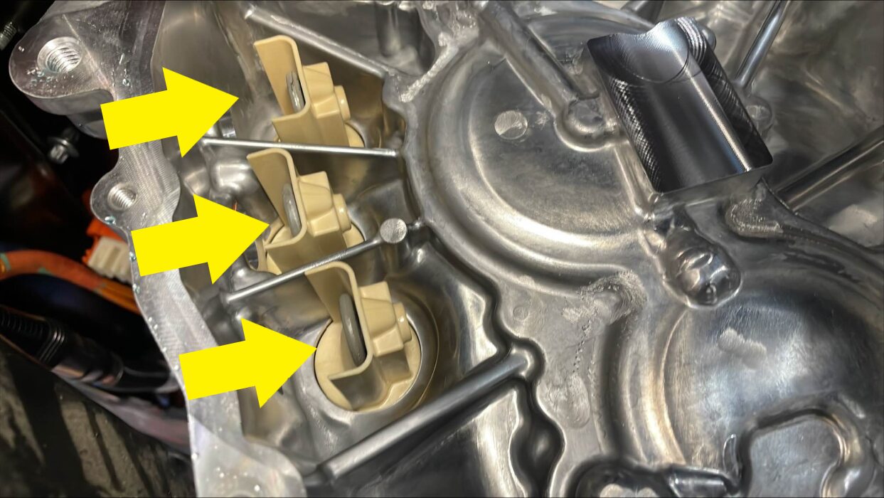将左侧软管卡子安装到高压电池外壳后部滑板上。