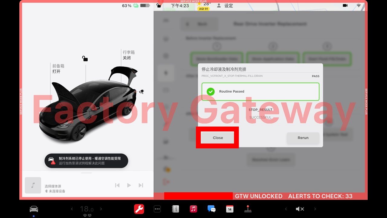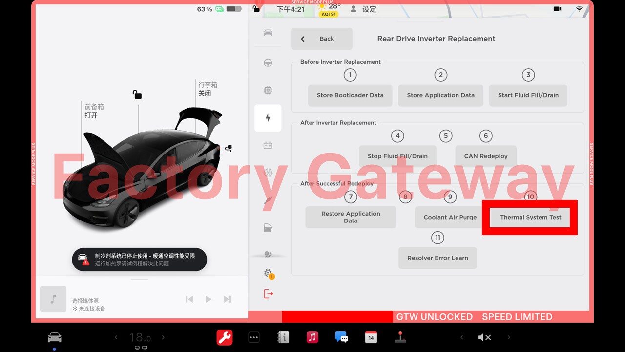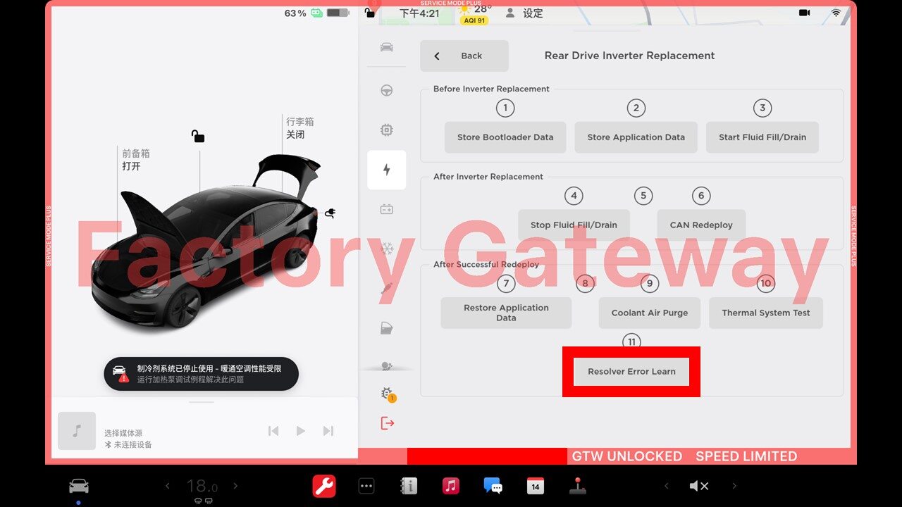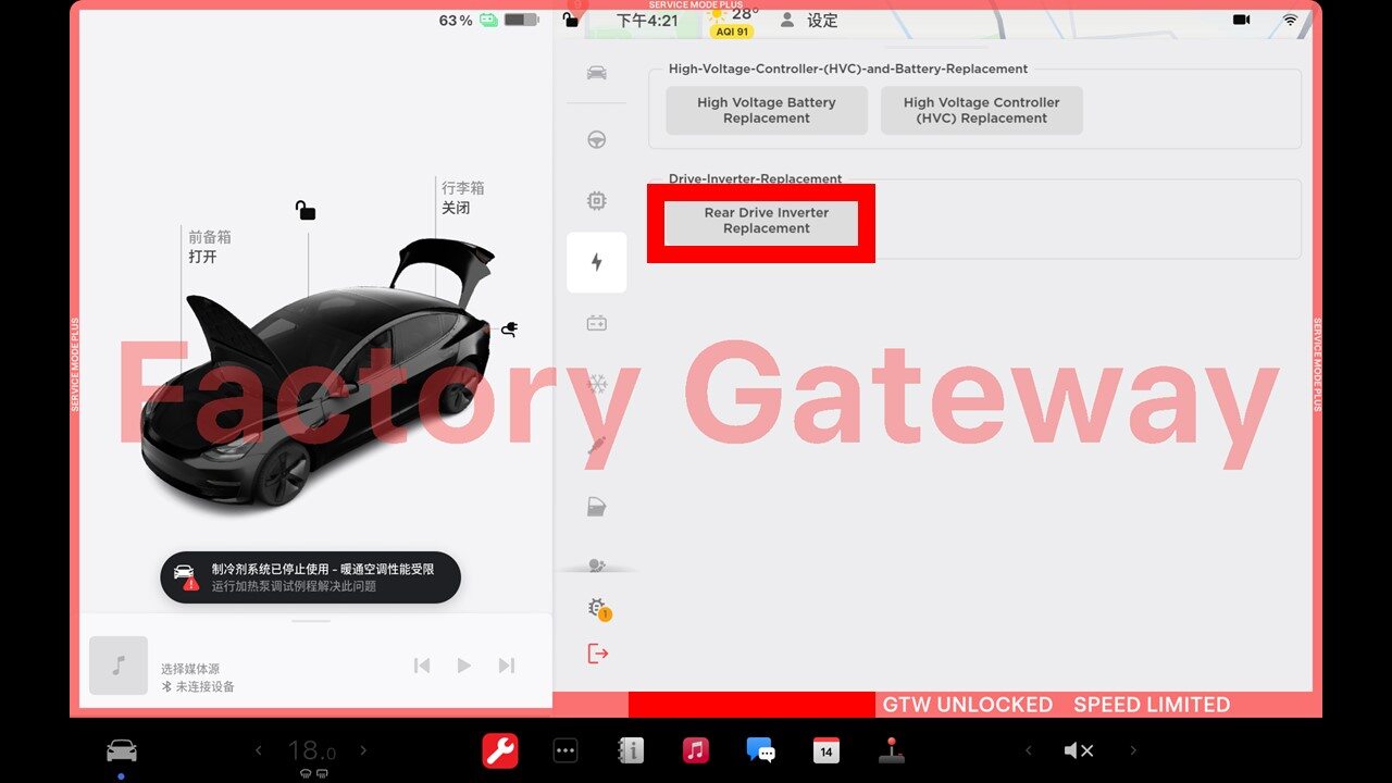 在 UI 界面上选择 "REAR Drive INVERTER Replacement"。