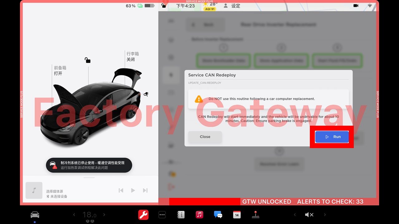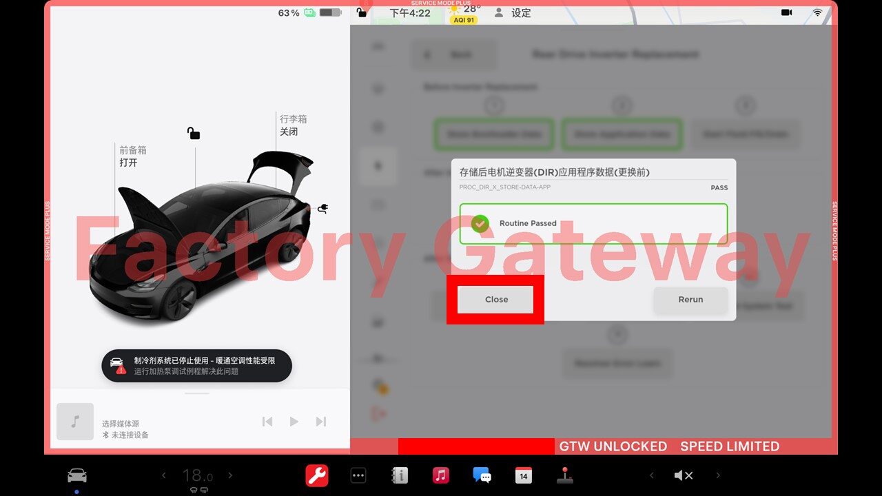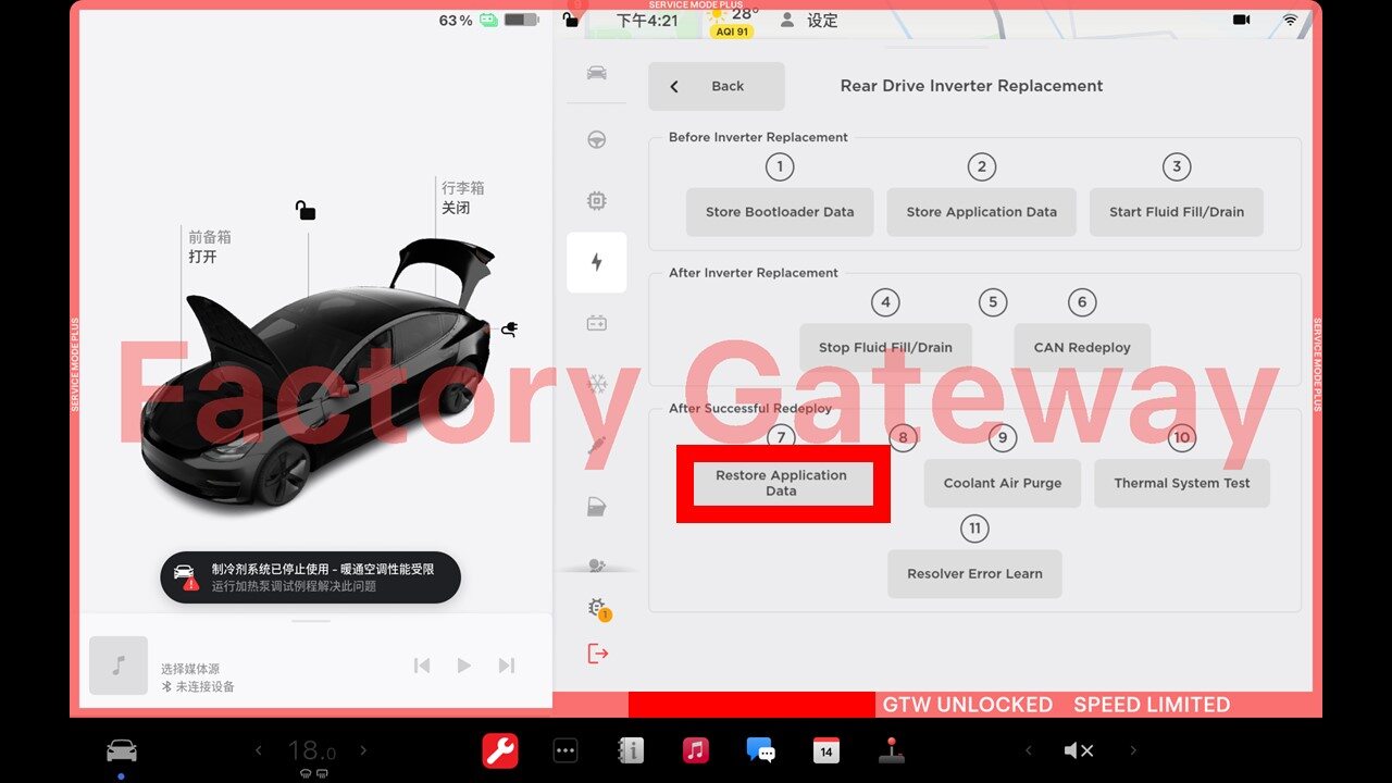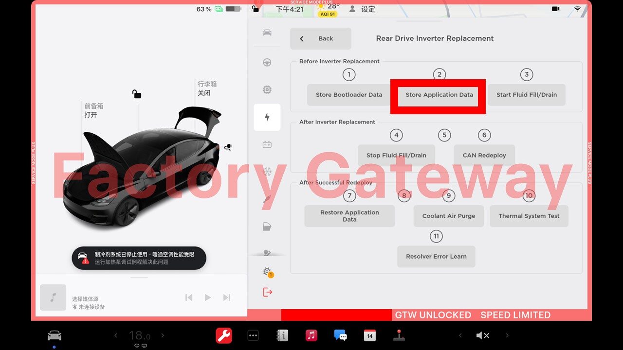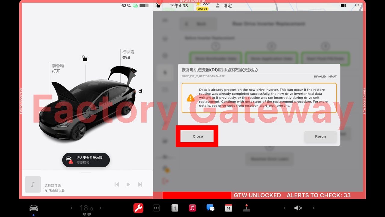 在 UI 界面上选择 "REAR Drive INVERTER Replacement"。