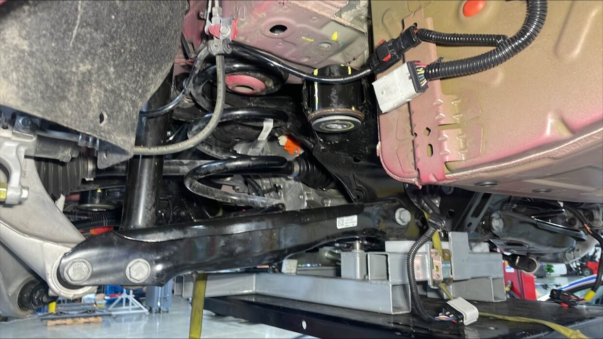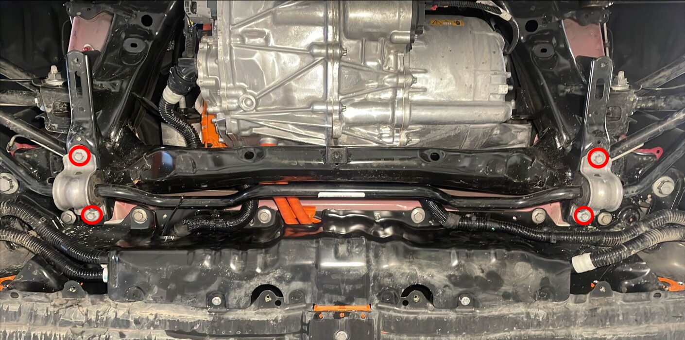 拆下将后平衡杆固定到副车架的螺栓,然后拆下总成。