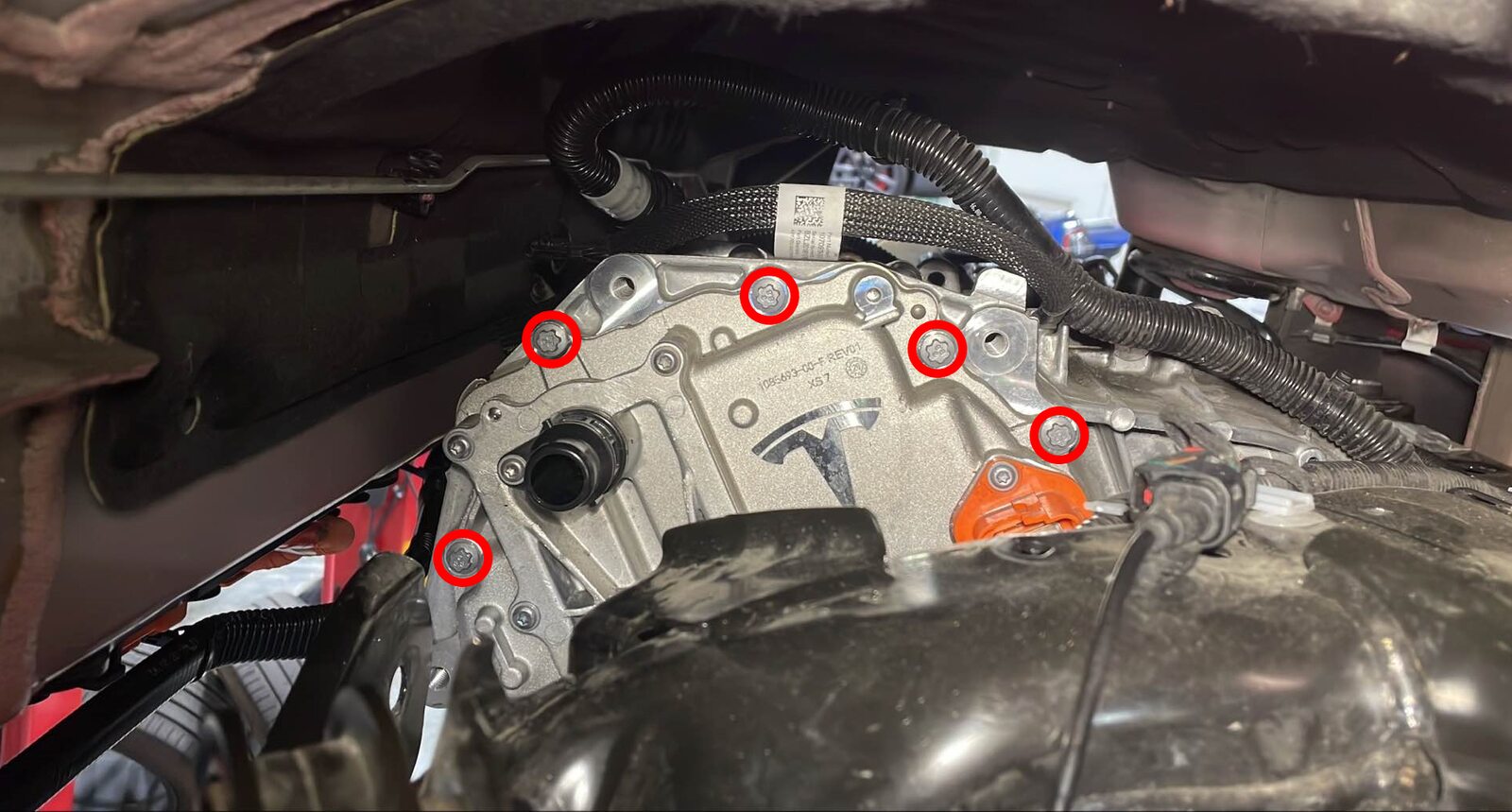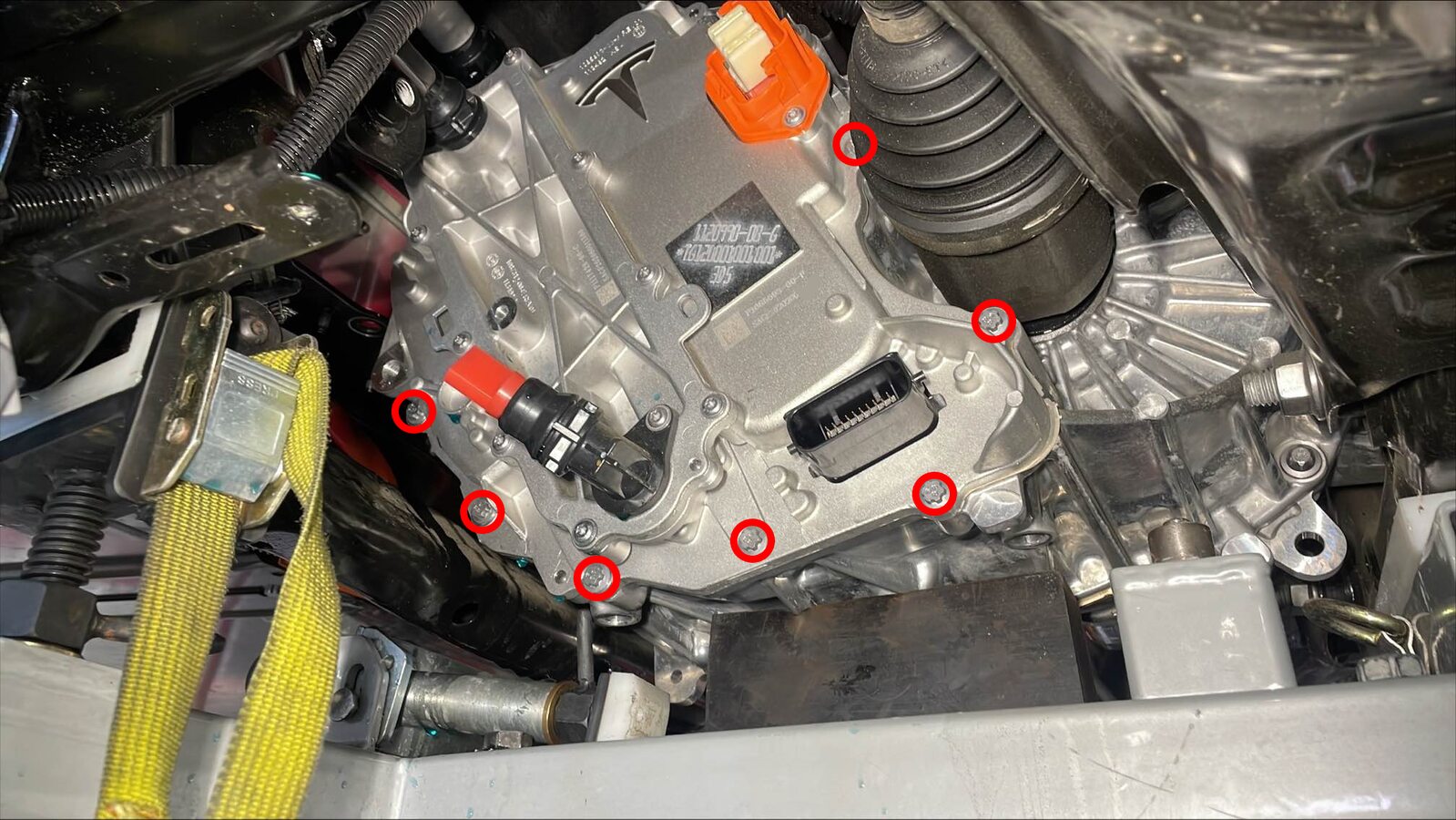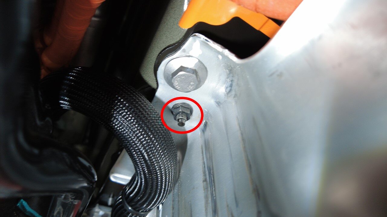 拆下用于固定高压电池外壳后滑板的上部螺栓。